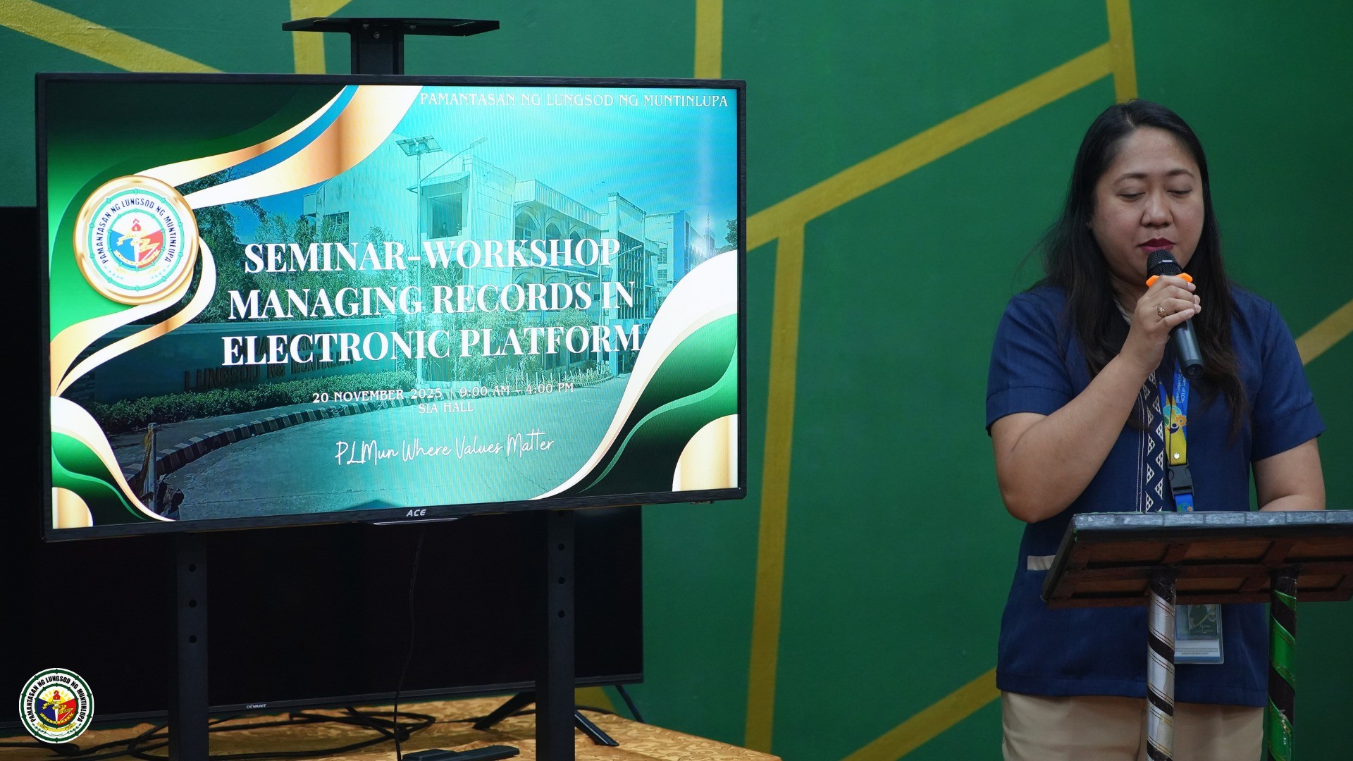 On November 20, 2025, the Pamantasan ng Lungsod ng Muntinlupa (PLMun), through its Records Management Office under the leadership of Officer-in-Charge and Head Ms. Irma M. Calderon, in partnership with the Central Records Office of Muntinlupa led by Ms. Elizabeth Gaviola, conducted a Seminar-Workshop on Managing Records in an Electronic Platform at the University Executive Lounge.