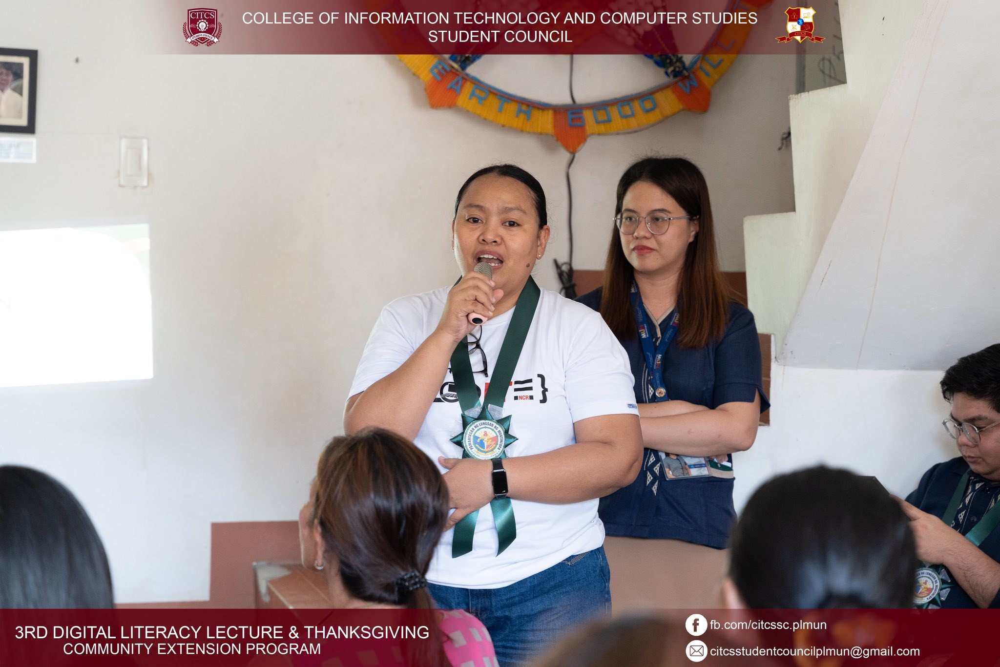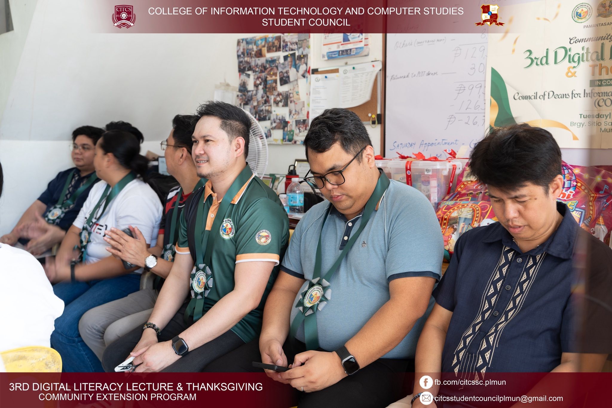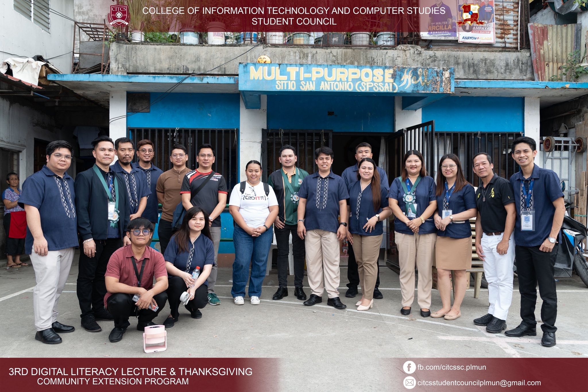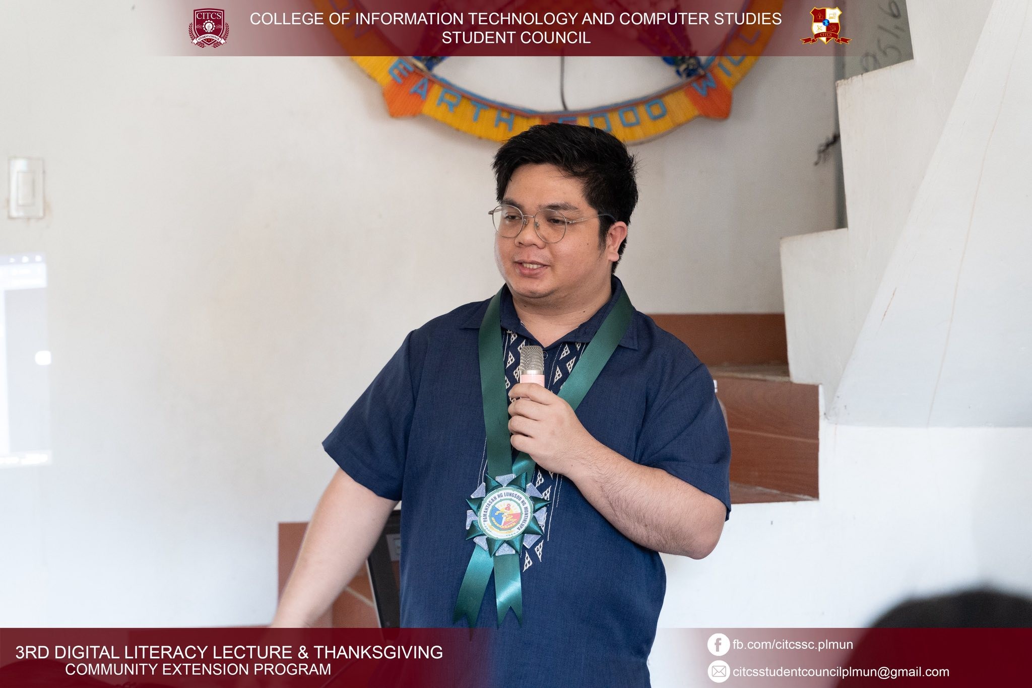 The PLMUN – Extension Office, together with the CITCS Faculty, the CITCS Student Council, and in collaboration with the Council of Deans for IT Education – NCR (CODITE-NCR), successfully conducted the 3rd Digital Literacy Lecture with Thanksgiving and Gift-Giving Program.